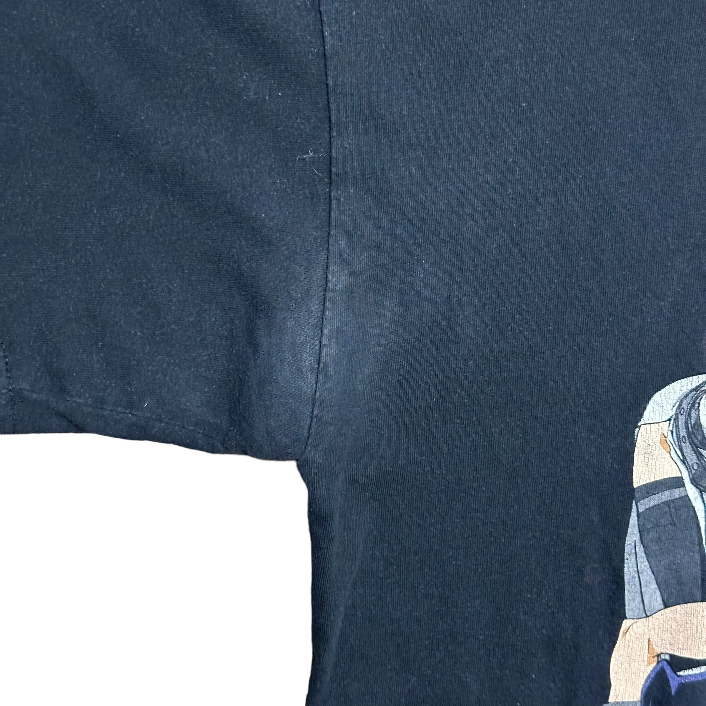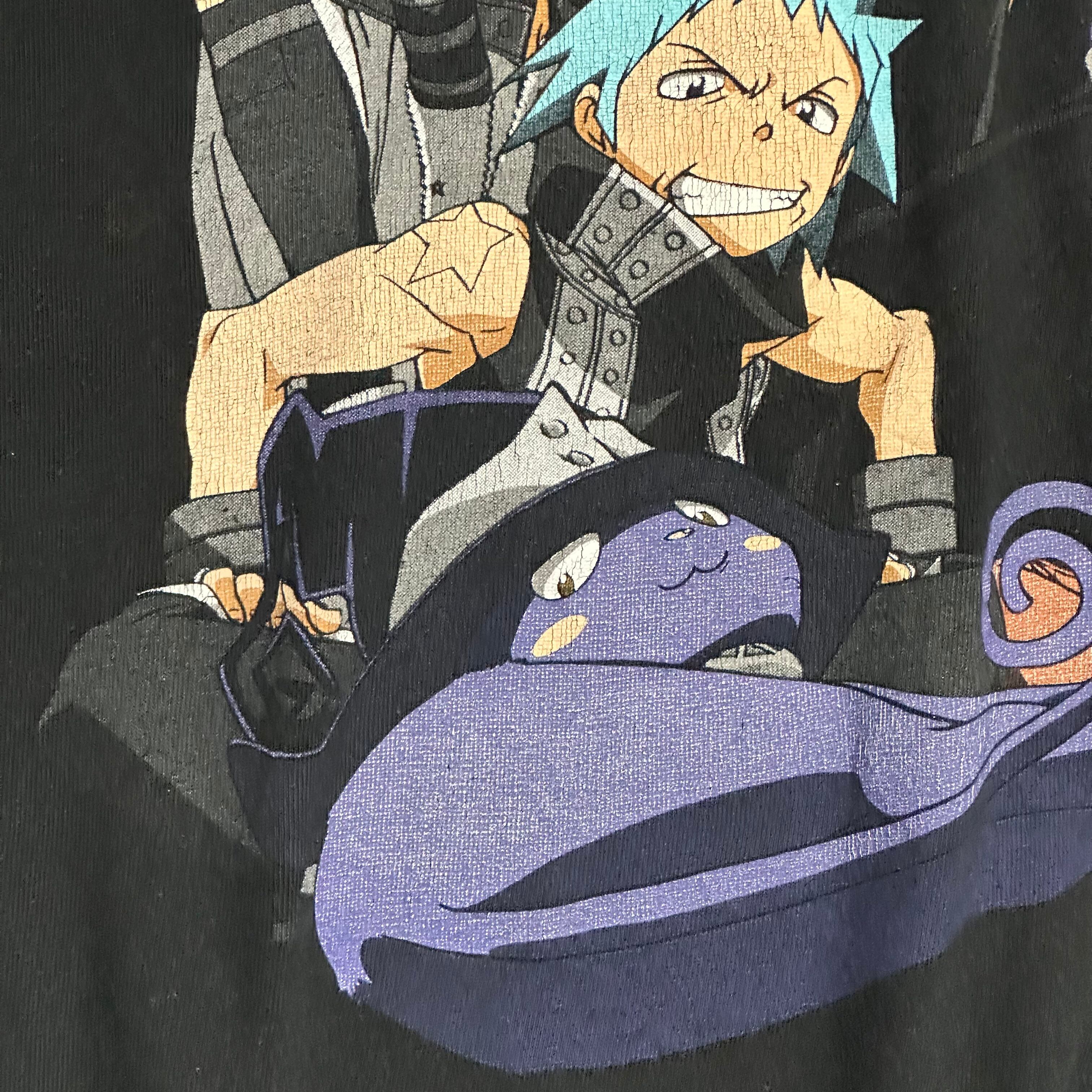 【explanation】 毎度完売「ソールイーター」 S・Mサイズが多い中、今回も「XL」そして、「ボックスシルエット」 タグ欠損が多い中、嬉しいタグ付き。 プリントのクラッキングも良し。 好条件です。 是非。 【size】 表記XL 着丈68cm 身幅60cm 肩幅63cm 袖丈22cm 【condition】 rank『B』 右脇に色落ちあり。
